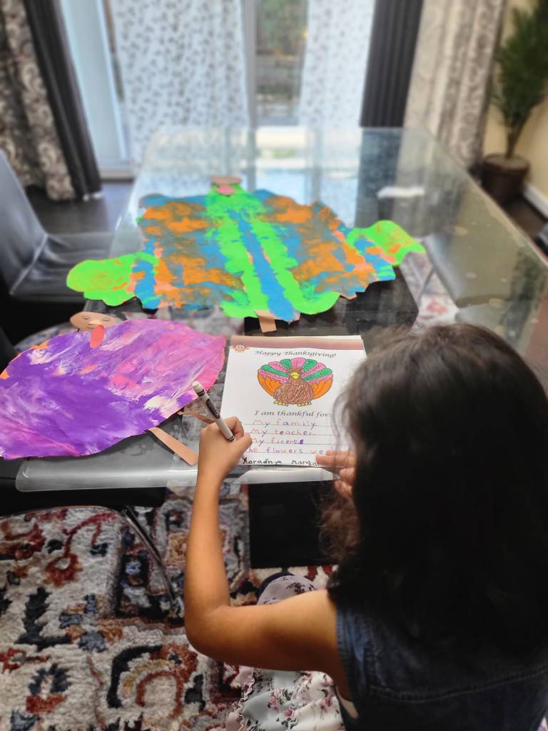 I love the way kids are growing up. Every year during Thanksgiving weekend, they give us a Thanksgiving card that they create. They use their love, and emotions, and write in their beautiful handwriting “What are they Thankful for?” Over the years their answers got refined, but the crux is still the same. They are thankful for their family. They are thankful for their teachers 😊. Such an innocent, remarkable, and pure emotion kids carry!